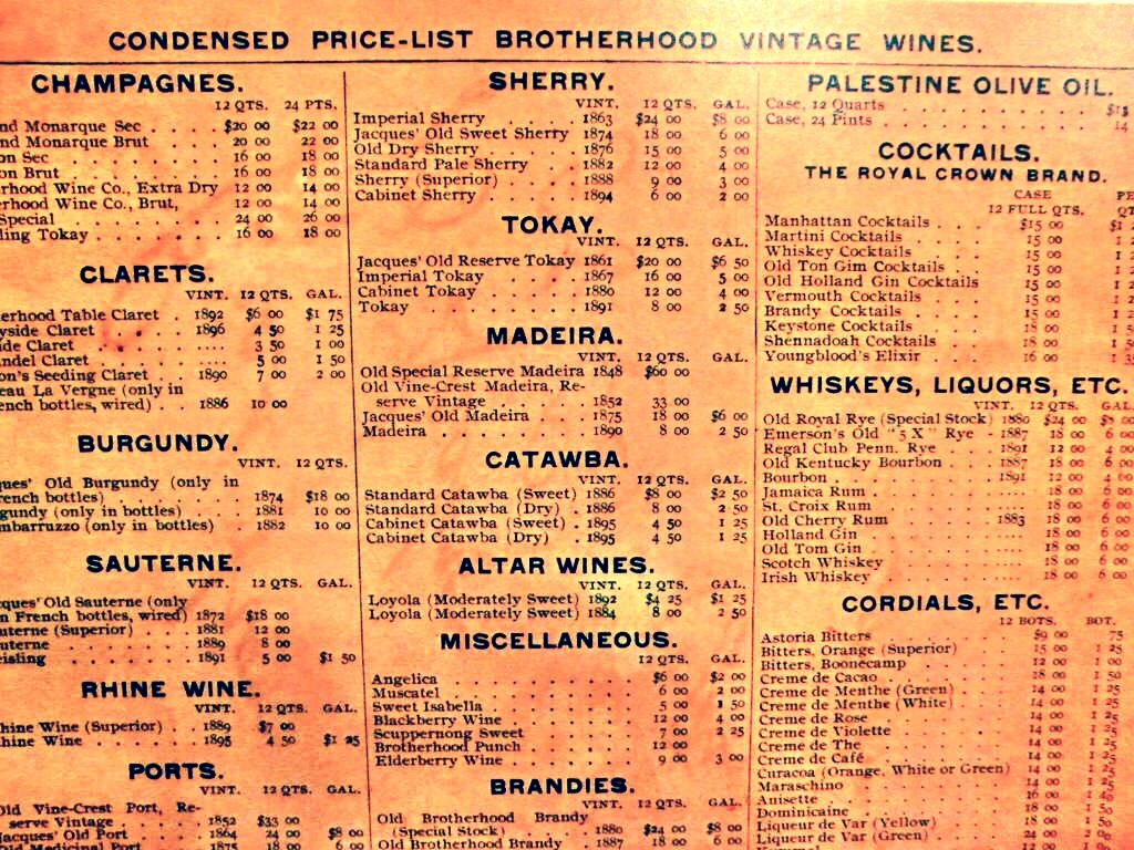 Here is a price list from Brotherhood Winery dating back to the 1800’s, compliments of Debbie Gioquindo of Hudson Valley Wine Goddess: