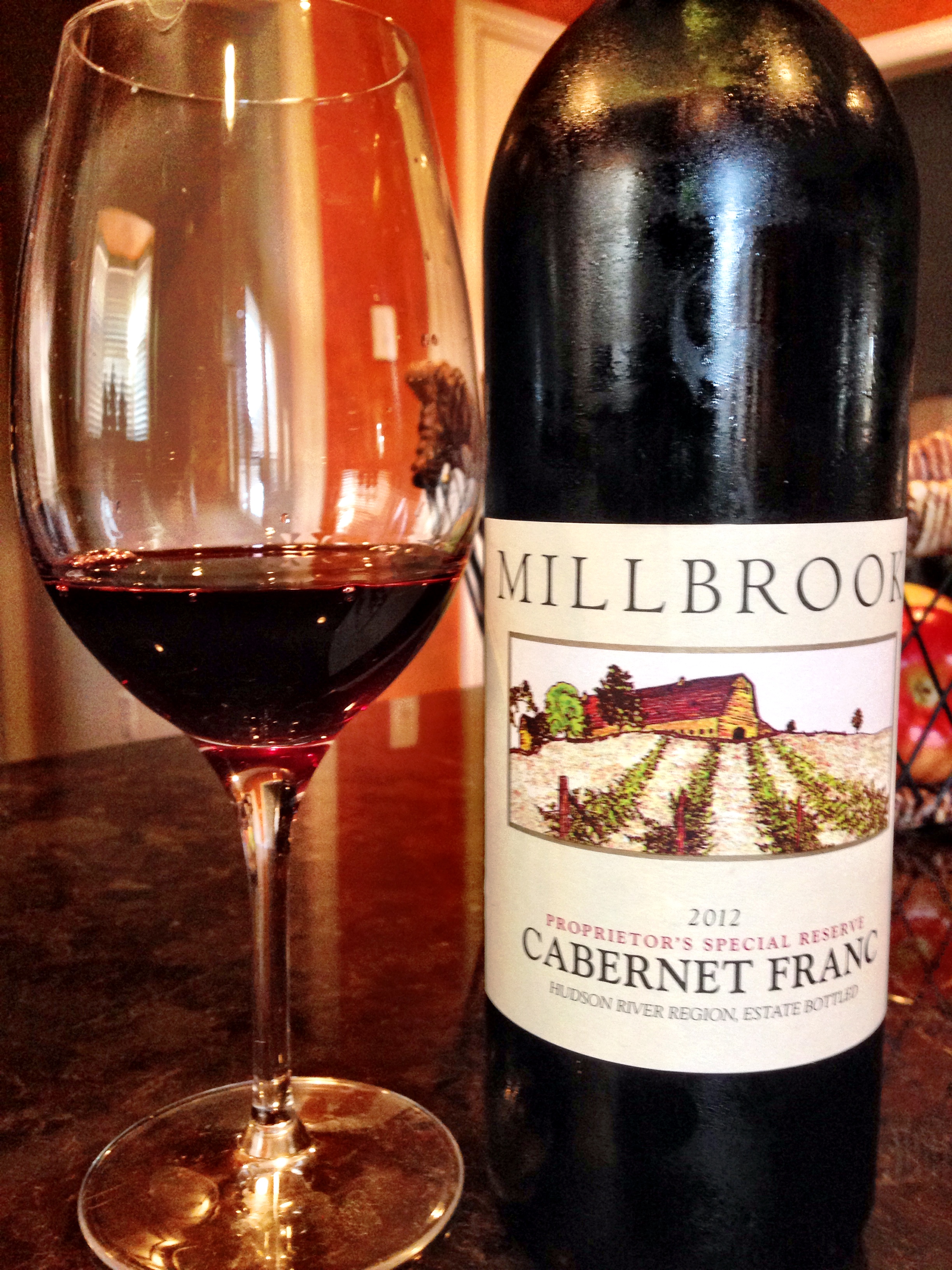 Millbrook Vineyards and Winery Proprietors Special Reserve Estate Bottled 2012 Cabernet Franc: This deep ruby wine was crafted of 95% Cabernet Franc and 5% Merlot. It opened with aromas of bramble berry compost, peppery spice, smoke and a hint of espresso. On the palate this wine offered ripe cherries, blackberries, and white pepper with a classically Cab Franc touch of green peppers along with smoke and a hint of mocha on the back of the palate. The Millbrook Cab Franc was a medium body wine with balanced tannins and round acidity, finishing dry on the palate. It underwent 100% malolactic fermentation and spent 14 months in oak barrels. It was a very food friendly wine that was quite enjoyable. SRP $30. I recommend this wine.