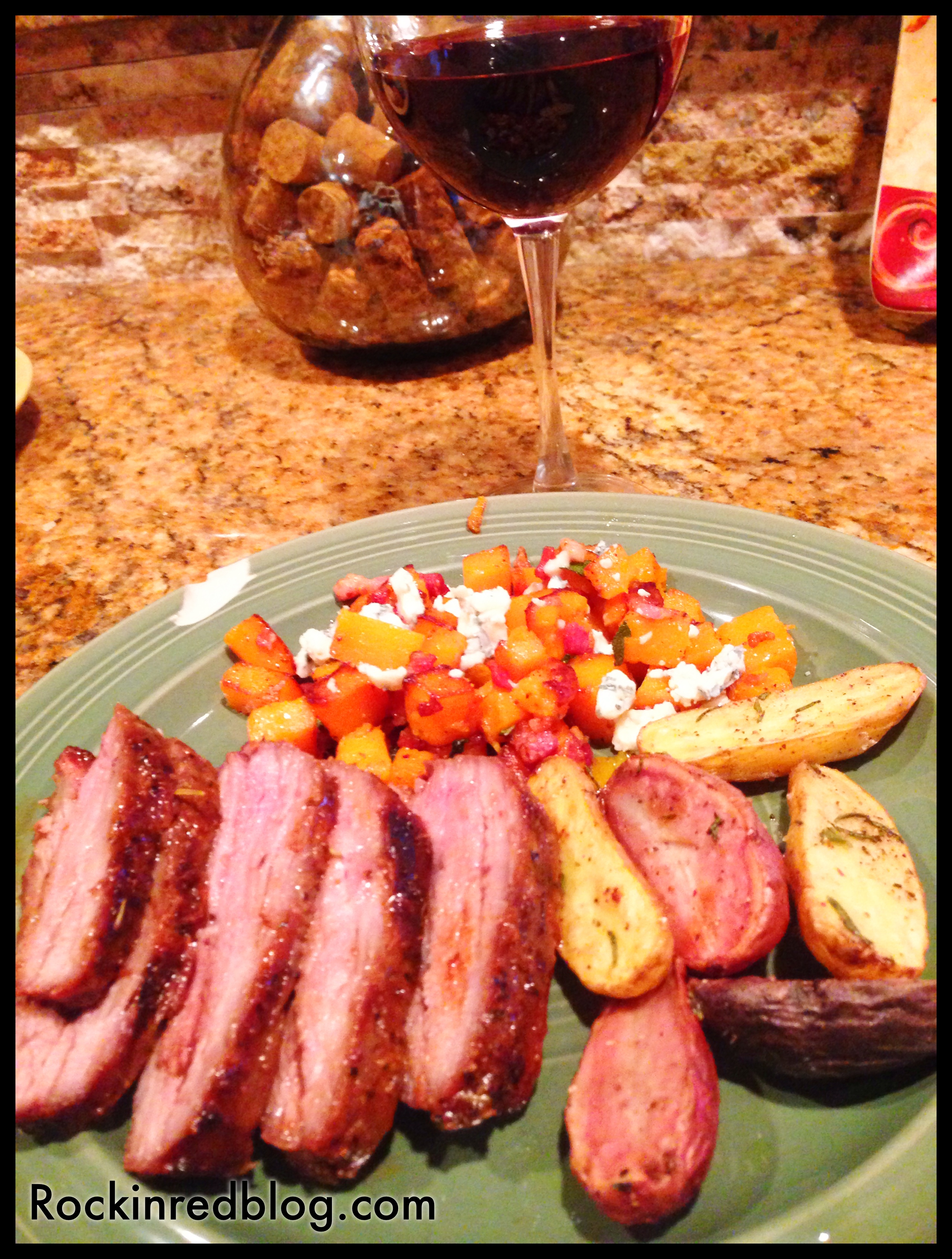I wanted to make herb crusted steak to pair with this concentrated wine so I began where I often do: Pinterest. I found a delicious recipe for Herb Crusted Tri-Tip that you can find on my Pinterest page. I paired the steak with oven roasted fingerling potatoes with rosemary and olive oil and roasted butternut squash, cubed and steamed for 3 minutes in chicken broth in the microwaved, then sautéed with diced pancetta, finely chopped shallots and topped with crumbled gorgonzola. The herb crust on the steak that was seared on due to high temp grilling paired beautifully with the spice, pepper and earthy flavors of the wine, while the potatoes and squash mixture balanced out the concentrated fruits and chocolate. Additionally, the creaminess of the cheese delighted as the acidity of the wine wrapped around the mouth. It was a perfect food and wine pairing if I do say so myself! Because we had cake for our first anniversary dinner and were going to have dessert the following night as we went out for dinner, I had not planned on a dessert with this evening’s meal. But I must confess when I see macaroons I buy macaroons! So we shared six delicious macaroons. And of course they were great with the wine; all that was missing was sitting in Trocadero Square gazing upon the Eifel Tower!