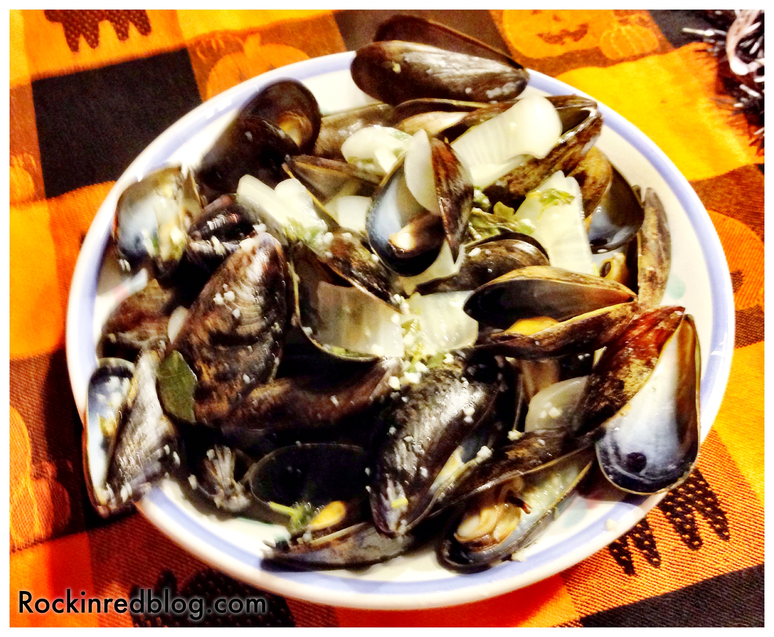 When we sat down to dinner our first course was a delicious pumpkin soup with steamed mussels. Mark did his homework in order to find the perfect wine to pair with this course.