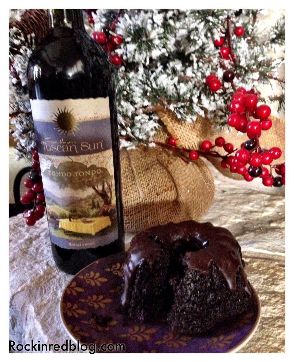 I chose to pair this wine with a wonderful winter weather evening of watching Under the Tuscan Sun movie, (while longing to return to Italy) and enjoying a fabulous mini-chocolate Bundt cake from the Corner Bakery by the fire! A perfect night! The chocolate cake not only brought out the chocolate nuances of the wine but blended beautifully with the wines round red fruit. Furthermore, the balanced tannins and acidity of the wine cut some of the sweetness of the chocolate cake. It was a most enjoyable evening!