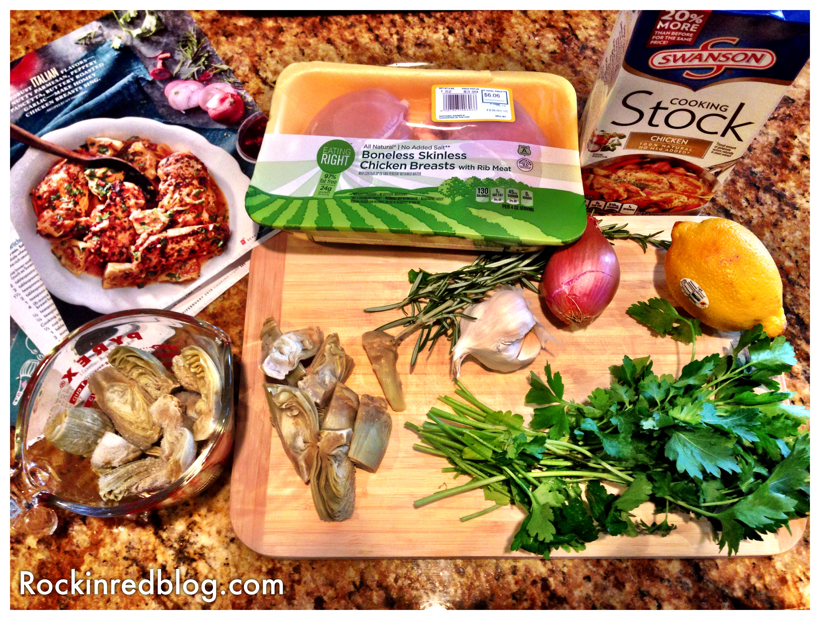 I paired this wine with a recipe from January’s issue of Cooking Light Magazine: Chicken with Artichoke Pan Sauce. The zesty lemon sauce paired with the salty pancetta and savory garlic and shallots married perfectly with the Chardonnay. Furthermore, the rosemary and parsley pulled an herbal essence out of the wine as well. It was an excellent meal! Eating that dish paired with Cornerstone Cellars 2012 Chardonnay was healthy and light! I love January.
