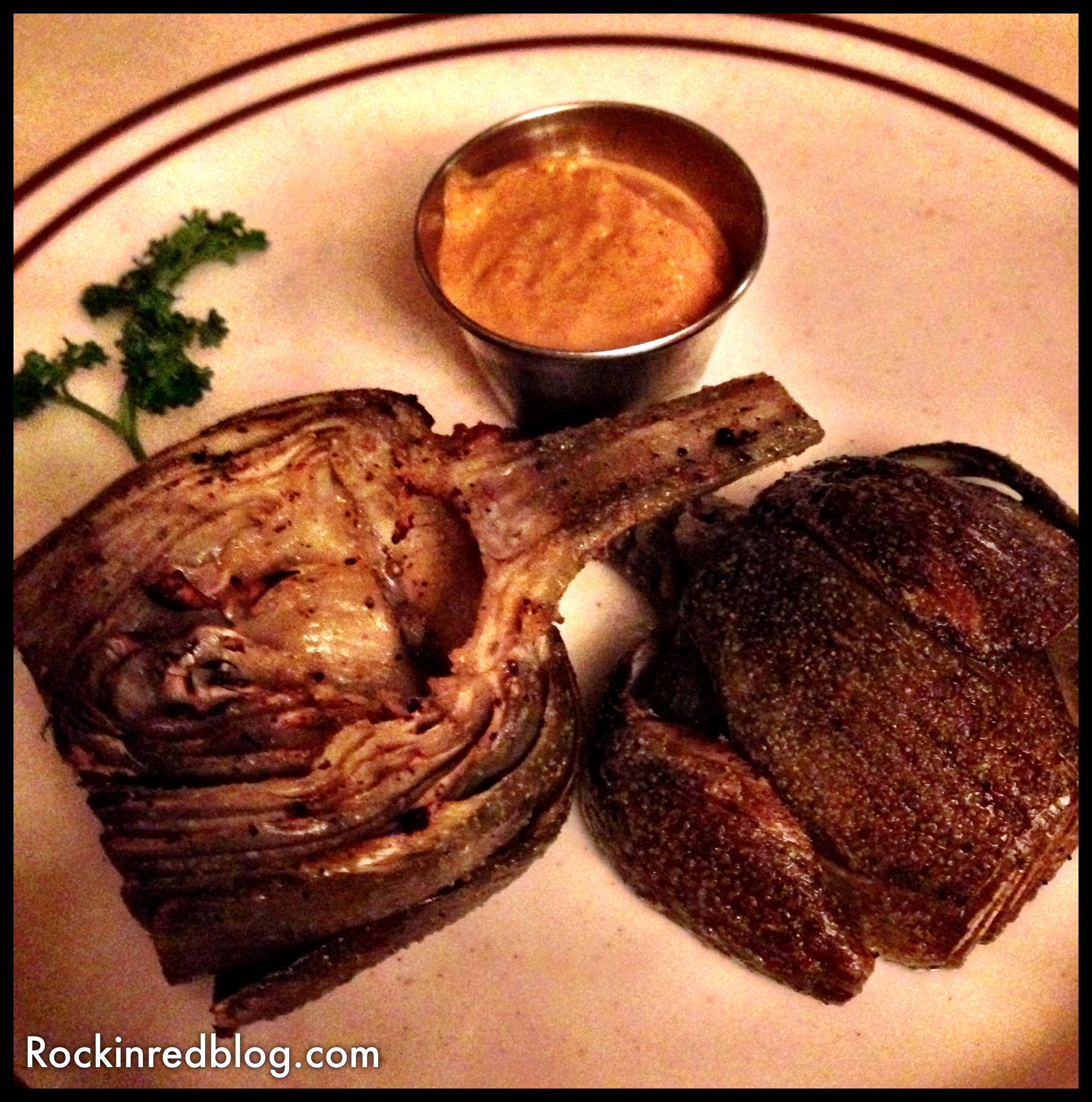Purely coincidentally late in the same afternoon we had an awesome wine tasting experience at Loring Wine Company (keep a look out for that upcoming article), which is located right next door to the Hitching Post II. The staff at Loring said they dine their frequently and really enjoy it. The sign outside the HPII claims they serve the “World’s Best BBQ Steak!” Now we are from Texas; we eat a lot of great bbq and a lot of great steak but we had never heard of BBQ Steak! So my husband inquired at Loring about this phenomena and our minds and palate were put to rest. Apparently HPII uses a special rub on their meats before they grill them. OK, so it is beef with a delicious dry rub; not smothered in bbq sauce. Got It! Oh, and their recommendations: artichokes, steak and the HP Highliner Pinot Noir!