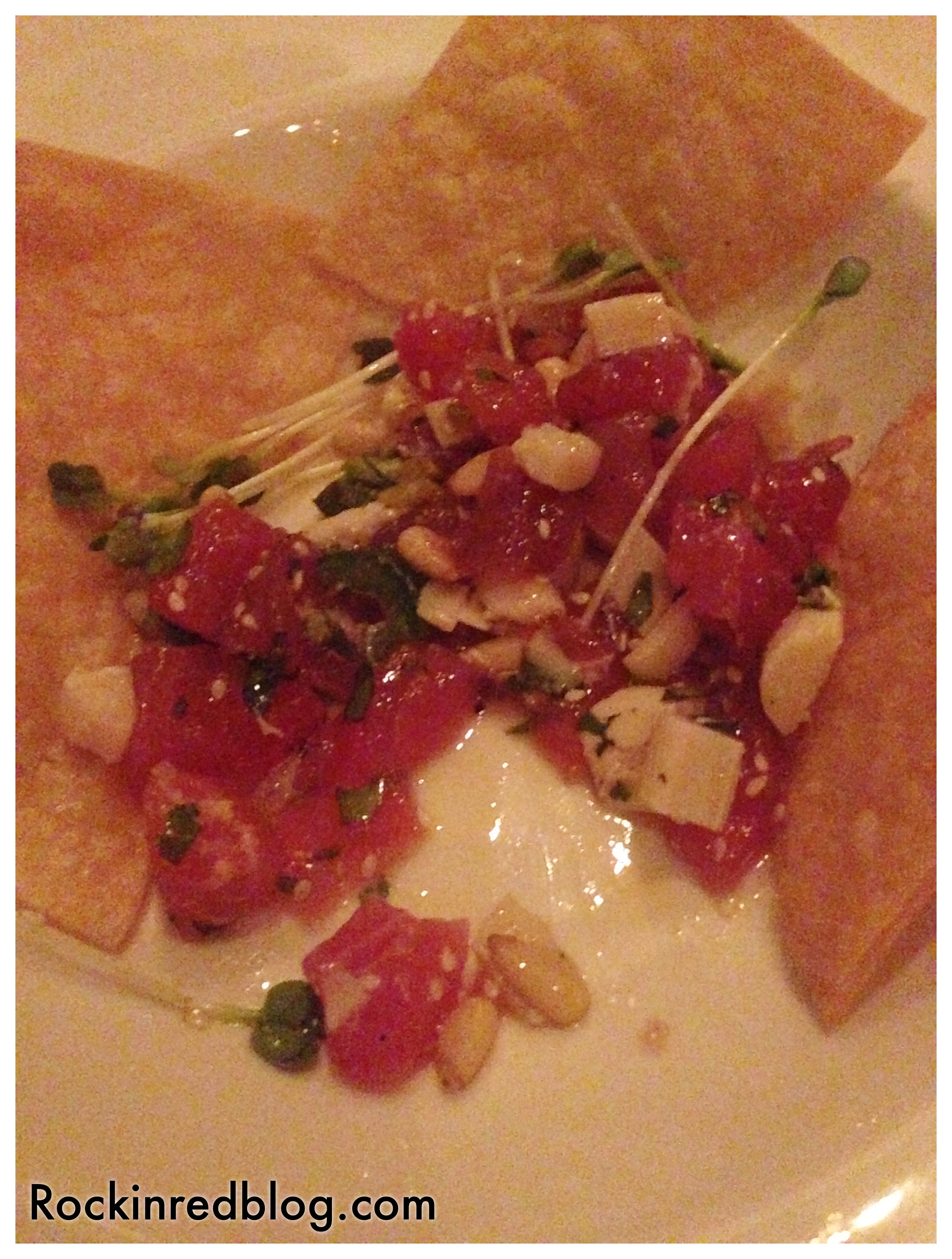As we arrived the restaurant had great energy. It was elegantly casual with a well-balanced menu; wine, beer and cocktail all thoughtfully selected for an enjoyable dining experience. We were early for our reservation so we took the opportunity to enjoy a glass of wine at the bar and chat with Victor a bit about his career in the restaurant industry and family, Victor has three daughters all under the age of 10! I enjoyed a lovely Domain Pichot Vouvray; floral notes, citrus, tropical fruit, round acidity with a lingering dryness on the palate. My husband enjoyed a glass of Nicholas Potel Pinot Noir; cherry cola, mushrooms, strawberries, round acidity, medium body with a clean finish. Both wines were a nice start to our evening.