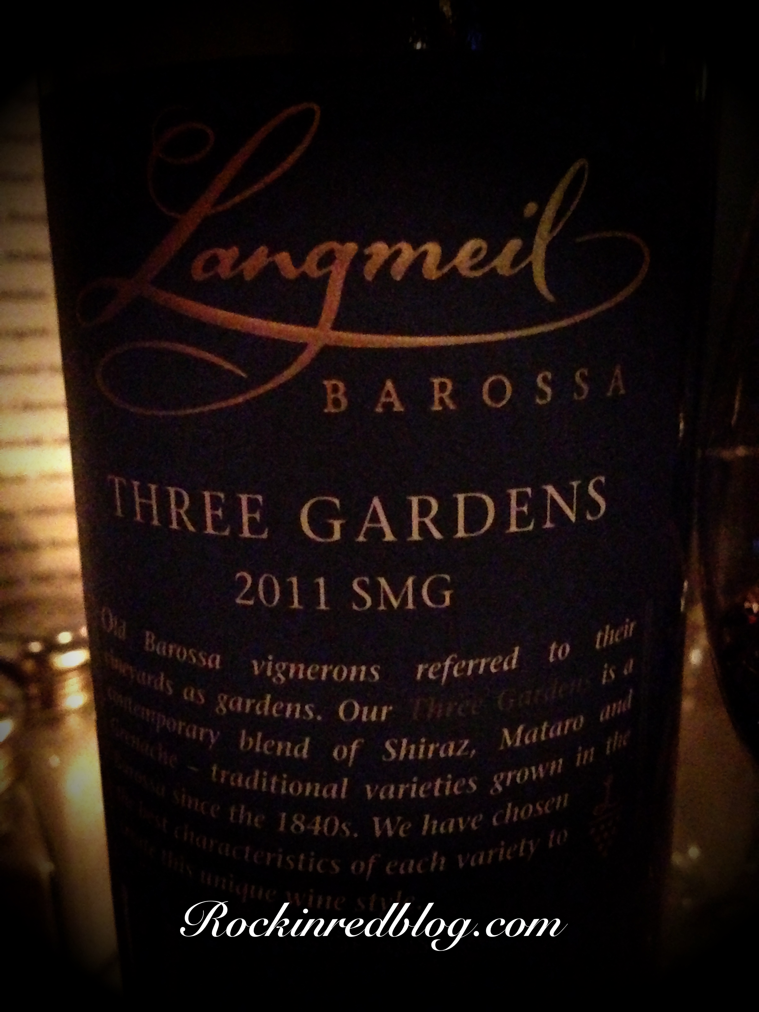 Langmeil Barossa 2011 Three Gardens: This sexy wine was crafted of 52% Shiraz, 31% Mataro (aka Mouvedre) and 17% Grenache. This wine opened with a brooding funk on the nose, black fruit, tobacco, spice and herbal notes. On the palate this deep violet wine offered smooth flavors of black raspberries, cherries and plums, along with wet underbrush, toasted cedar, smoke, Asian spices, leather and barnyard. It was a beautiful brooding wine that offered round acidy, integrated tannins, a rich full mouth feel and a lingering finish that begged for another sip. We were both thrilled with this wine and particularly loved the funk/barnyard essence it so beautifully wrapped around the fruit. YUM! SRP $17-20; click here to find this wine.