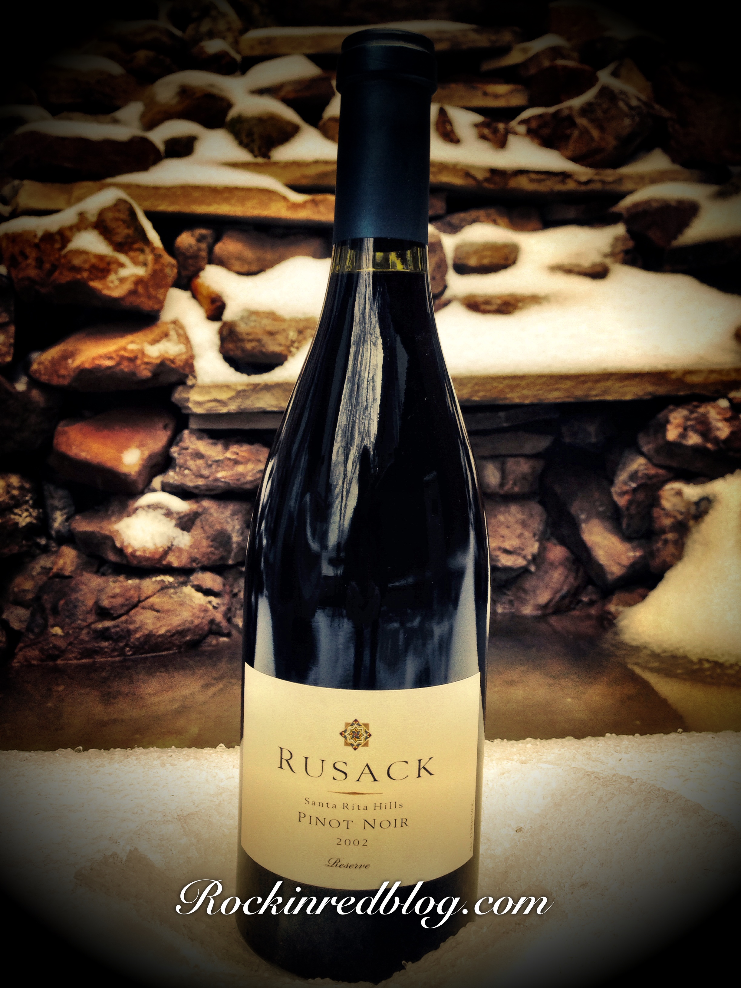 When my husband and I were in Santa Barbara County this past January we tasted and bought a lot of outstanding wines! (In case you are wondering we have not opened a single bottle of what we bought except one.) When we were tasting wine at Rusack with winemaker Steven Gerbac he shared with us they had some library wines they were selling. Old wine? Yes, I was interested. We bought of couple bottles the 02 Pinot Noir and Syrah. My husband looked at me with a Cheshire cat grin and said we are opening these when we get home! Fair enough. As I was fretting over OTBN I remembered these two wines, should we or shouldn’t we, I could not decide so I asked him and was met with a resounding YES! OK, he wanted to open the SRH Reserve Pinot Noir…..
