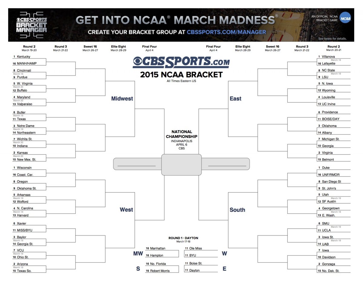 And here is the NCAA Men’s March Madness Bracket compliments of the CBS Sports, please click image to enlarge: