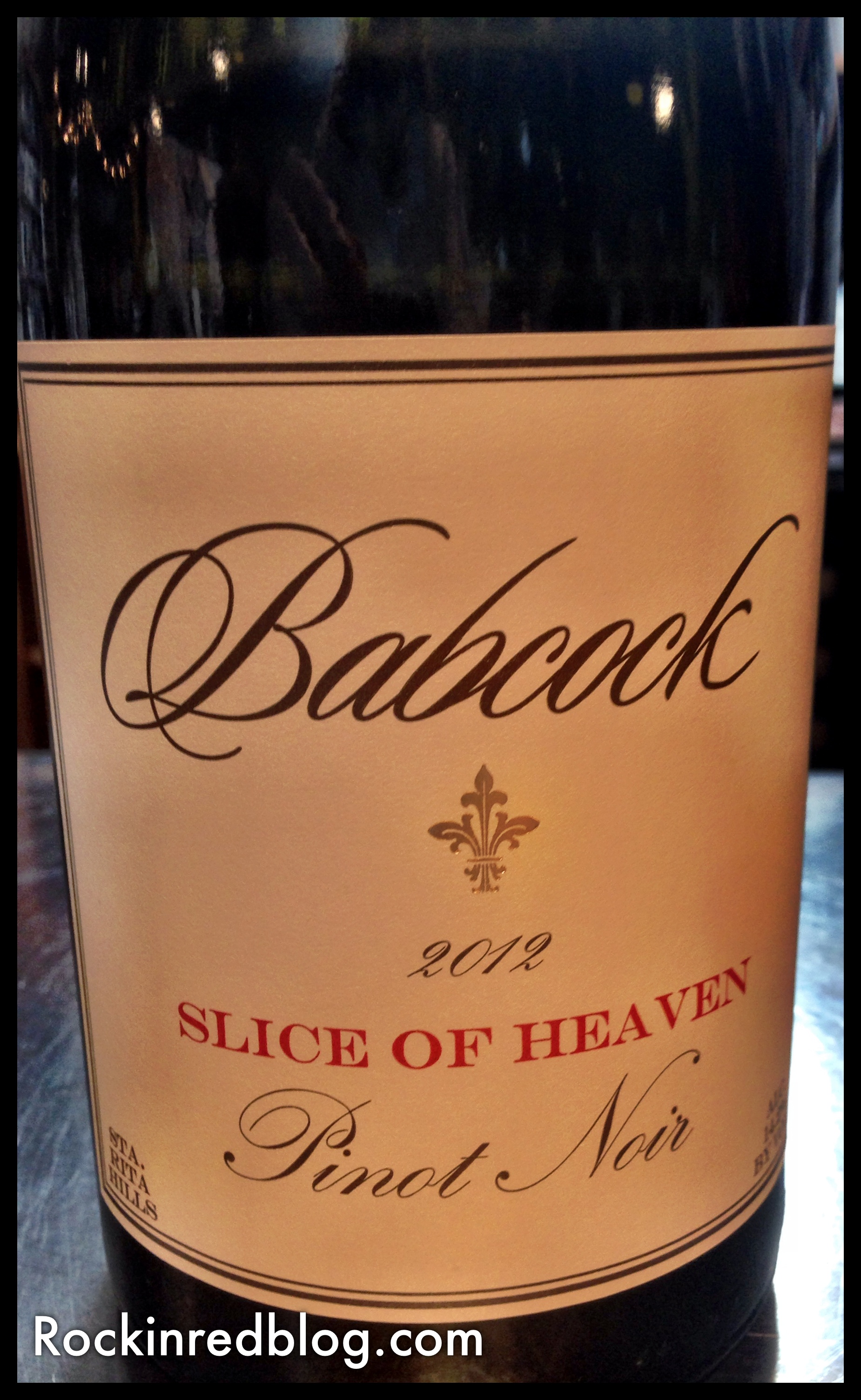 2013 Slice of Heaven Pinot Noir, Rita’s Crown Vineyard Sta. Rita Hills: Crown Vineyard is the highest AVA in SRH; Grapes from Block 14, Dijon clones 777 and 828. Ruby red in the glass; ripe red berries, vanilla, spice, soft and elegant Pinot Noir; light yet very flavorful; well balanced. 14.6% alcohol. SRP $60.
