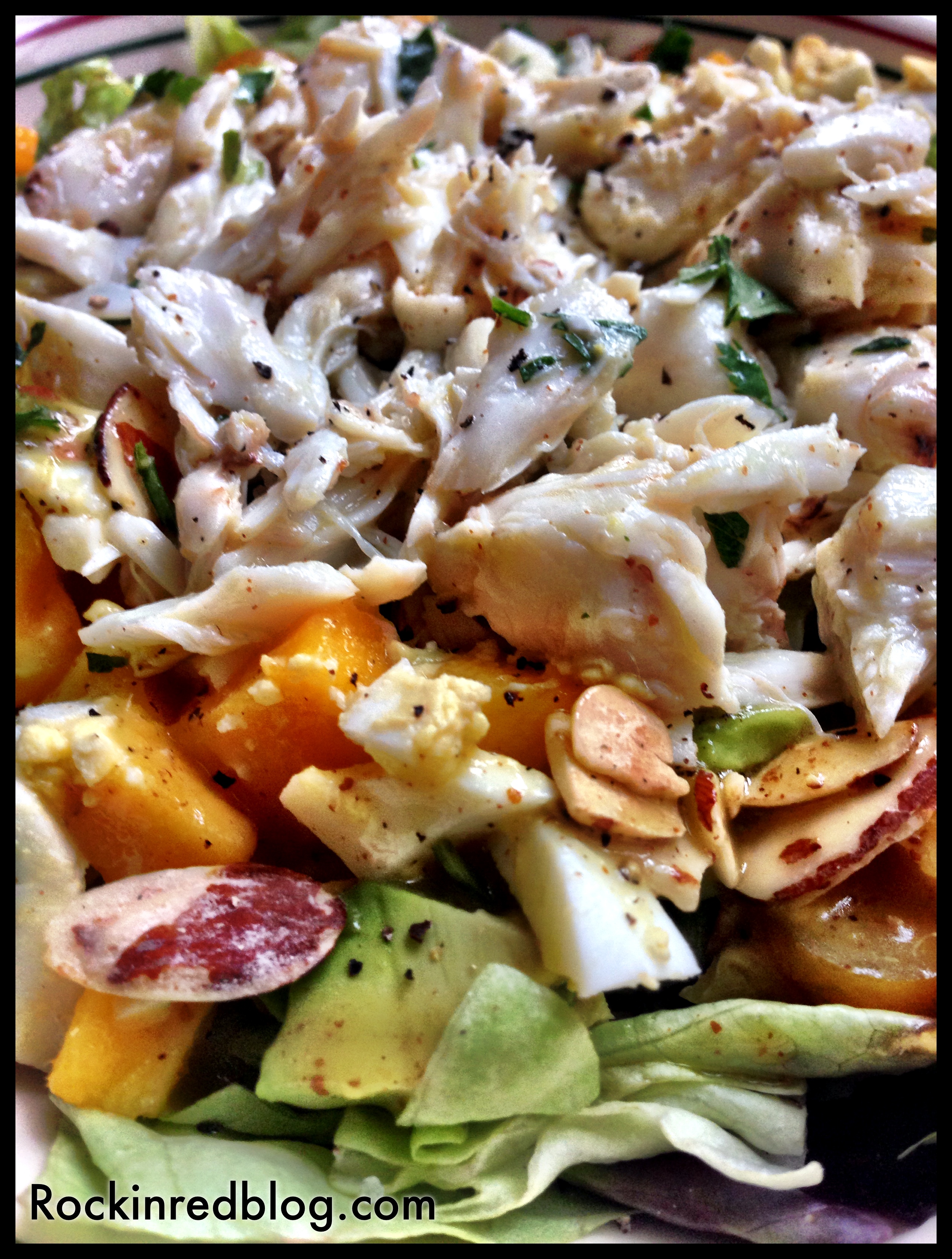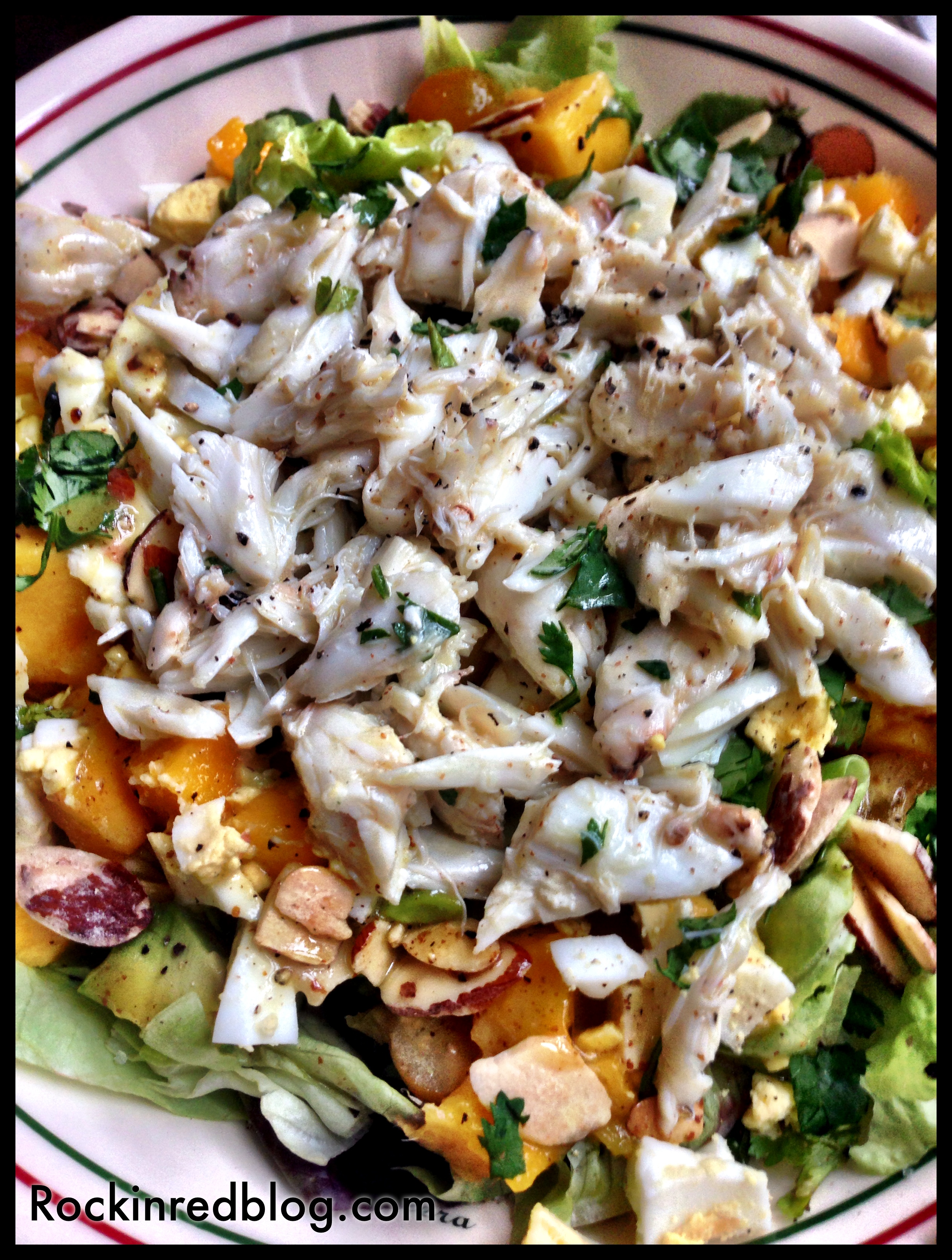 This versatile Rosé would pair beautifully with your favorite summer cuisine including hot dogs, hamburgers, grilled chicken, seafood and vegetable soups. I chose to craft a summer crab salad to pair with the 2014 Corallina Syrah Rosé. It was a recipe I made up as I was preparing it, grabbing whatever I could find that sounded good. Here is what I used in my summer crab salad: butter lettuce, very finely diced jalapeño (seeds removed), yellow cherub tomatoes, slivered almonds, chopped cilantro, chopped mango, chopped avocado and a hard-boiled egg, all tossed with a homemade salad dressing of Italian EVOO, orange infused vinegar, orange blossom honey, lime juice and course grained yellow mustard, then topped with fresh crab meat that had also been tossed in the dressing. It was a delicious dinner; perfect for a hot summer night. The salad paired very well with the Rosé with one exception, the sweetness of the mangos clashed with the high acidity of the wine. However, it in no way ruined the meal or the pairing. I would simply recommend instead of adding mangos to the salad to pair with this Rosé, add chopped sour cherries instead.