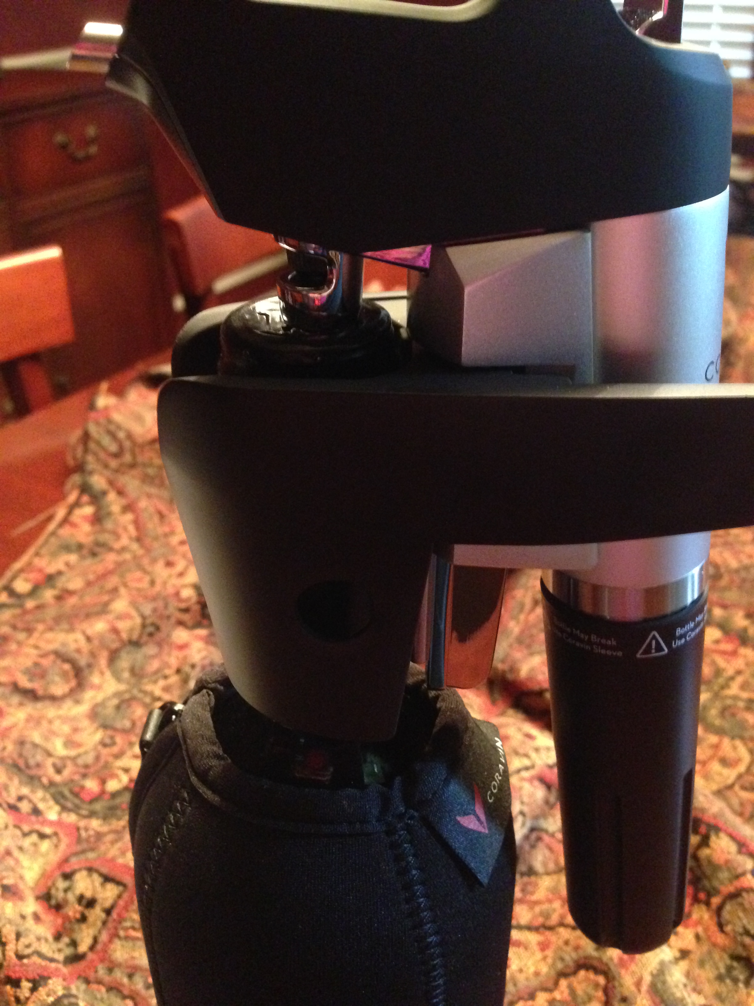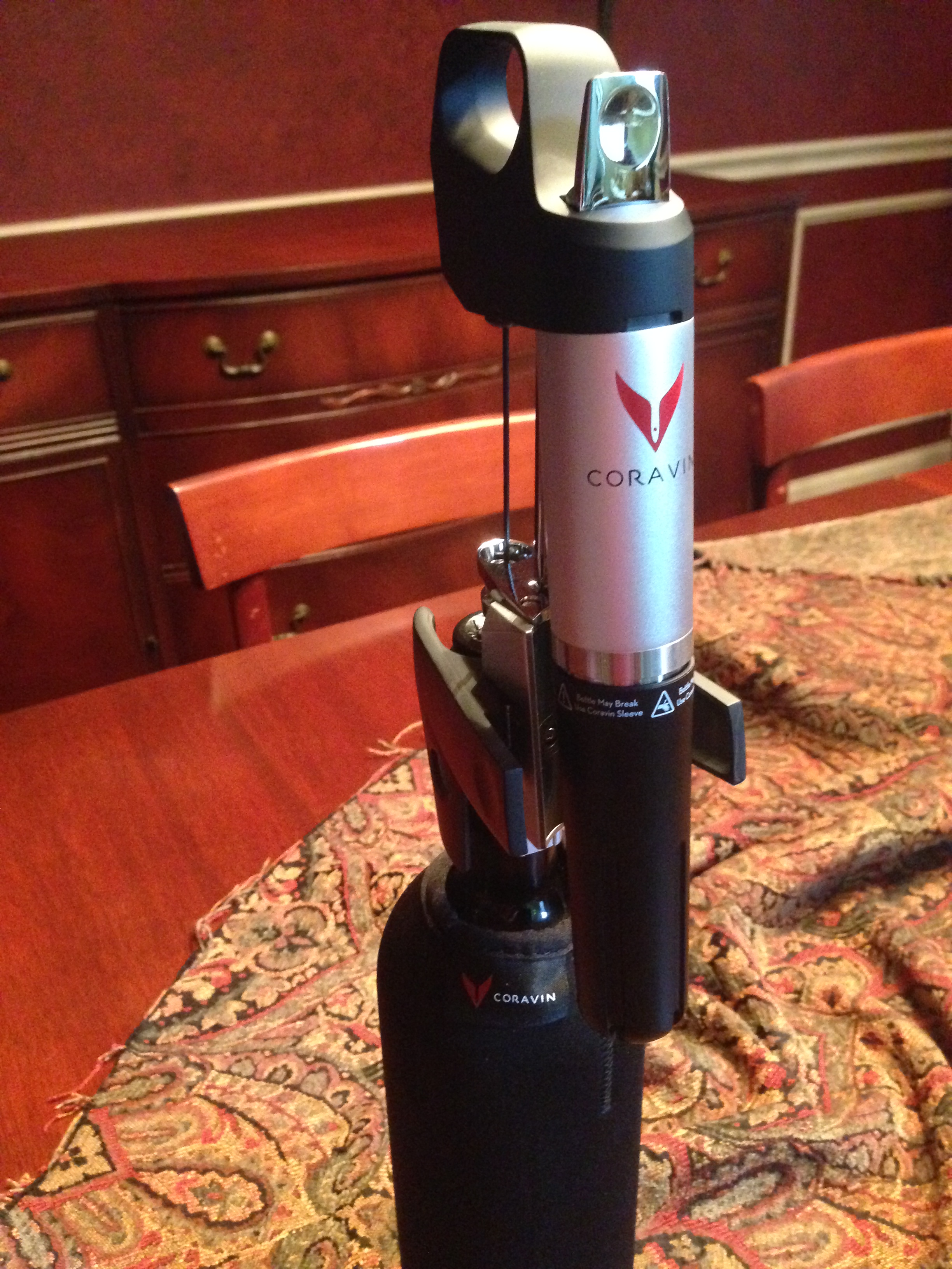 Coravin logo2In their own words the Coravin 1000 Wine System is: “The Coravin 1000 System allows you to access, pour, and enjoy your favorite wines by the glass whenever you would like, without pulling the cork. Its innovative design keeps your wine safe from oxidation, allowing it to continue to age naturally, giving you the freedom to pour a glass from any bottle at any time.”
