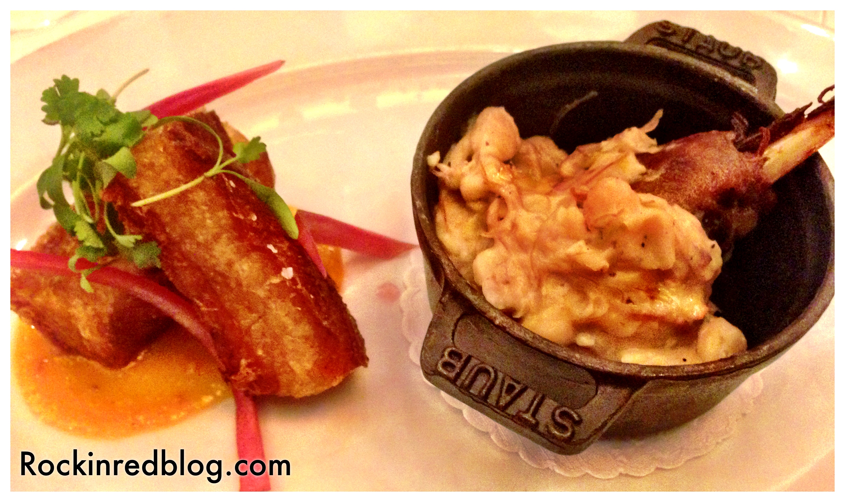 These two wines were paired with Crisp Pork Jowl: pickled red onion, watercress, chipotle-pear mostarda and Cassoulet: confit duck leg, white beans, and hatch chiles.