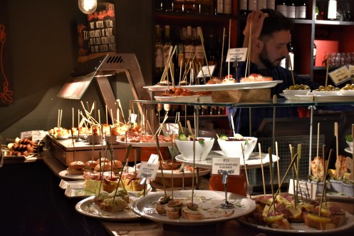 From Spanish Jamon to Basque Country pintxos, our next stop took us to Pix Bar where we enjoyed our choice of pintxos (Basque for tapas), paired with delicious Txakoli. I chose a cup of gazpacho and a fig and cheese bruchetta. It was so good.
