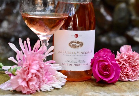 2016 Lazy Creek Vineyards Rosé of Pinot Noir Anderson Valley USA ($22): pale pink with orange hues in the glass; medium- youthful aromas of fresh picked strawberries, Rainier cherries, candied violets, orange blossom honey, Chantilly cream, vanilla, fresh picked herbs; elegant on palate with a balance of creamy texture and high acidity make for a delicious light body wine with a refreshing finish, more please.