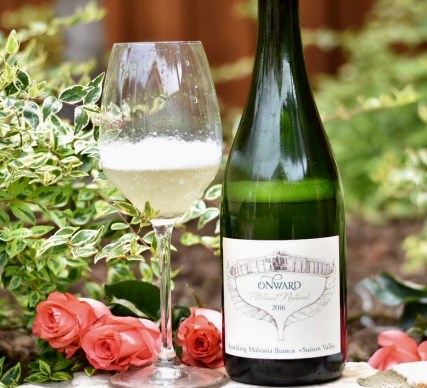 2016 Onward Wines Cap Inn Ranch Pét-Nat of Malvasia Bianca Suisun Valley USA ($24): 100% Malvasia Bianca; hazy gold in the glass; persistent fine perlage, medium aromas that open with pronounced yeastiness, blowing off to fruit notes of Bartlett pear, delicate white flowers, stone fruit, a trailing hint of lychee, buttered toast, and fresh citrus; soft mousse-like mouth-feel with lots of zestiness; high acidity and a long crisp finish.
