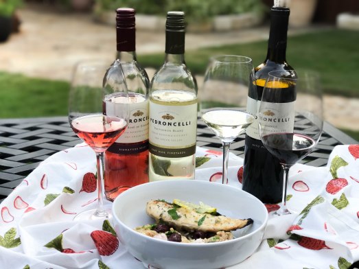 My Choice: I chose to pair all three wines with Pedroncelli’s recipe of Feta and Kalamata Lemon Chicken. I included wheat orzo pasta with the chicken and added artichoke hearts as well. This is the second Pedroncelli recipe I have received. What I enjoy about their recipes is they come from mom and grandma in the kitchen cooking dinner for the family. These are not fancy restaurant recipes; rather, they are easy recipes to make for family and friends that all will enjoy.