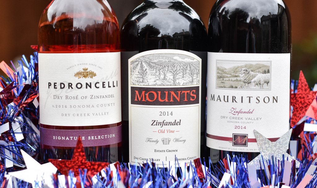 Today is July 4th, the date the Continental Congress ratified the Declaration of Independence, thus birthing a nation. On this national holiday millions of Americans will be participating in community parades, hanging out at the lake, beach, or pool, watching fireworks, and barbequeing. Statistics show 80% of Americans will attend cookouts, spending upwards of 2 billion on these cookouts, consuming 150,000,000 hot dogs, 190 million pounds of red meat and pork, and 700 million chickens. Thankfully we have a wine that is as American as baseball to help wash down all that food, Zinfandel from Dry Creek Valley, Sonoma.