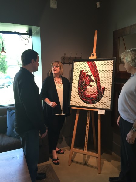 I truly stepped into the wine world through the back door. As Michelle introduced in her blog post Pairing Wine with Art Through Vino Mosaics, I am an artist who makes mosaics from wine foils preserved as tiles. I didn’t know much about wine when I first started. My parents collected the foils from their opened bottles in a glass vase, and I just thought they were interesting to look at. I made a few pieces for friends and family, but as interest grew I knew I would need to increase my supply and soon started visiting wine bars to see if they would save their discards for me. While there, I usually met a bartender or Sommelier who were all too happy to introduce me to new or interesting wines. My budding interest in wine led me and my wife to visit Napa Valley. I’ll be honest I was basically going door to door panhandling for foils at as many of Napa’s 400+ wineries that I could fit into our itinerary. However, that vacation far exceeded my expectations as I was greeted with open arms and treated as an “industry” insider. I met so many warm and gracious wine people and that lead to wine dinners, unique educational tours, and invitations to come back for art shows and events. My wife and I now visit Napa and Sonoma quite regularly and enjoy connecting with the friends we’ve made there.