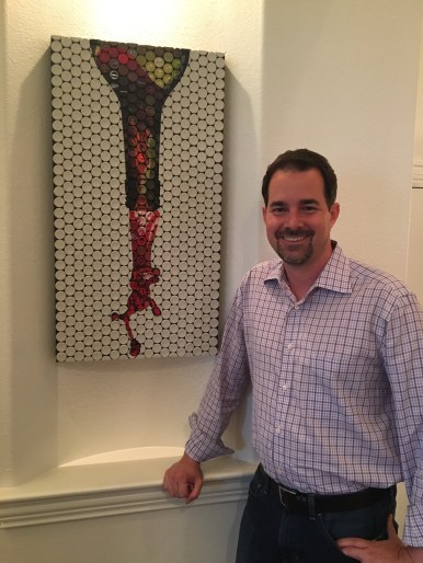 Yes, wine is drinkable art, but my friend Ryan Sorrell is teaching the world that there is more art to a wine bottle than the wine inside. Ryan is the artist and founder of Vino Mosaics. I wrote an article about Ryan’s wine art two years ago. As he continues to impress with his incredible Vino Mosaics I felt it was time to put Ryan in the spotlight once again. Today, Ryan shares his wine journey in a way that is personal and inspirational. If you did not read my feature on Ryan’s Vino Mosaics I strongly encourage you to read it as well; his art is fantastic!