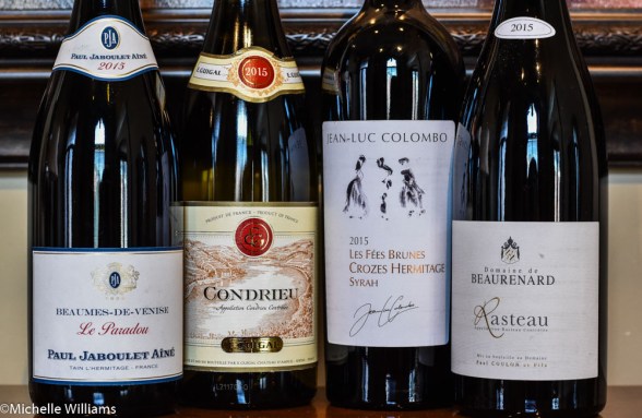 I wish I could share with you notes of a wine from each cru. I have not been so lucky to taste wines from every one of them. What I can share with you today is four wines beginning in the north in Condrieu, traveling down the Rhône River through Crozes-Hermitage, Rasteau, and ending up in Beaumes-De-Venise. Here are my very brief notes: