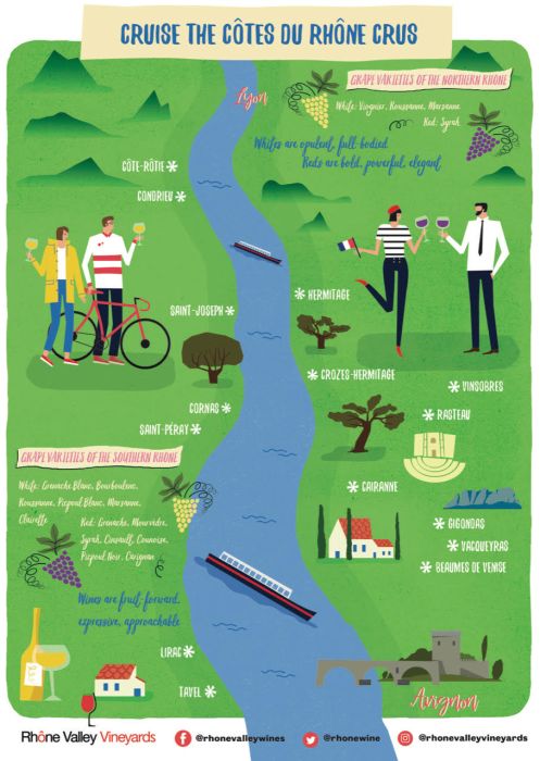Wouldn’t it be great to take a river boat cruise down the Rhône River? There are many quaint towns with world-class restaurants and festivals happening throughout the year. Best of all, great views of the vineyards and changing topography from northern to southern Rhône.