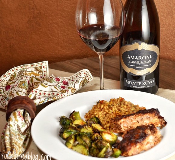 Amarone pairs well with braised veal cheek, wild boar ragu, mushroom risotto, hard cheeses, and much more. I was looking for a less weighty pairing for the Monte Zovo Amarone. I dear friend made us a wonderful winter solstice dinner of Ina Garten’s Meatloaf. It blew my husband and me away. How could it be so good? It’s just meatloaf. Make it yourself and you will see. I changed the topping from ketchup to a balsamic glaze to meet the raisiny flavors of the wine. I added roasted Brussels sprouts and Pumpkin Sage Farro.