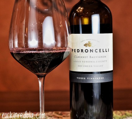 2015 Pedroncelli Three Vineyards Cabernet Sauvignon Dry Creek Valley USA ($20): 81% Cabernet Sauvignon, 12% Cabernet Franc, 3% Merlot, 3% Petit Verdot, 1% Malbec; medium+ ruby, medium aromas of black cherry, black currant, black berry, black raspberry, cinnamon, cloves, nutmeg, violets, toast, licorice, vanilla; a smooth wine with medium tannins and medium+ acidity, lots of spice on the palate, structured with a medium+ body and medium finish; well over delivers for the price. Click here to buy this wine.