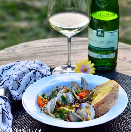 I chose to pair this wine with Linguine with Smoked Baco, Leeks, and Clams from Toby Cecchini in the New York Times. This quick to prepare weeknight meal was perfect with the wine. The briny claims really paired well with the wine’s minerality and salinity. The smoked bacon added another dimension to the salinity. Although the three Tablespoons of lemon juice are optional in the recipe, in pairing with the Picpoul the lemon is a must! The creaminess of the sauce incorporated a bit of the wine with EVOO and lemon juice for the perfect balance to the high acidity. I was unsure how the cherry tomatoes would fair, but as part of the overall dish it was a winner!